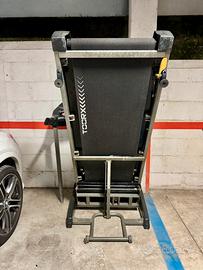 Possibilità di qualsiasi prova prima dell'acquisto,ritiro di persona e prezzo da concordare (Ostia Lido RM) Toorx TRX 90S (top della gamma) Motore3,75/6,5 HP DC (Peak) Velocita1,0 - 22,0 Km/h con incremento di 0,1 km/h Inclinazioneelettrica 12% su 12 livelli Piano di corsab40 x 1510 mm - spessore nastro ortopedico 2,5 mm Programmil libero, 5 presettati, 2 HRC target: tempo, distanza, calorie Peso massimo utilizzatore150 Kg Sistema di ammortizzazionepiano di corsa su 6 elastomeri con sistema di assorbimento HAC Piano di corsaspessore 25 mm con rivestimento Phenolic e tecnologia FLEX DEX Diametro dei rulli anteriore 64mm - posteriore 64mm Peso del prodotto109 Kg Dimensioni aperto 2010 × 885 × 1445 mm Dimensioni chiuso1160 x 885 x 1740 mm Struttura garanzia a vita, pre-assemblato 80%, nr. 4 ruote di trasporto Peso del prodotto imballato120 Kg Dimensioni imballo 2115 x 900 × 385 mm CertificazioniCE-ROHS-EN957 Descrizione funzioni console grande display LCD 158x88 mm retro-illuminato blue backlight ricevitore wireless per fascia cardio integrato fascia cardio Toorx - in dotazione sistema rilevazione frequenza cardiaca tramite hand-pulse comandi velocità/inclinazione su corrimano tasti scelta rapida velocità: 0-1-2-3-4-5-6-7-8-9 Km/h tasti scelta rapida inclinazione: 0-1-2-3-4-5-6-7-8-9% Ventilatore incorporato. Dotazioni multimediali: ingresso audio per lettore MP3 e casse acustiche Informazioni fornite dalla console velocita - inclinazione - trequenza cardiaca - distanza - ritmo di corsa - consumo calorico - lap 400 metri - segment time - programma in esecuzione High Absorption Cushioning Esclusivo sistema di assorbimento dell'impatto sulla superficie di corsa composto da strutture in gomma che si deformano e ritornano naturalmente in posizione di riposo. Garantisce una corsa non affaticante, silenziosa e rispettosa delle articolazioni. Superficie di corsa costituita da un pannello composito in legno multistrato con proprietà naturali di elevata fessibilita.