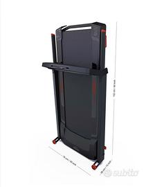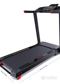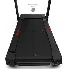 Tapis Roulant Domyos Run 100, acquistato da Decathlon. Ha una velocità massima di 14 km/h., un piano di corsa di 20 cm x 45cm, è pieghevole, progettato per essere compatto e facile da riporre, include 30 programmi di allenamento preimpostati, dotato di display retroilluminato per visualizzare tempo, distanza, calorie, velocità e battiti al minuto, ha i piedini regolabili per la pendenza, può reggere il peso di una persona fino a 130kg. Vendo per inutilizzo. il prodotto è funzionante e ben tenuto.