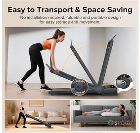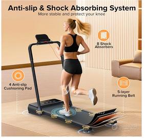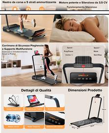 Tapis Roulant Salvaspazio Elettrico Pieghevole - 3.5 CV Walking Pad con Inclinazione Automatica Manubrio Schermo LED Supporto Tablet e Telecomando, Tapirulan da Casa Portata 136 kg Tapis roulant con 12 livelli di inclinazione automatica: Simula da terreni dolci (2%) fino a pendenze impegnative (15%), trasformando camminate/corse in efficienti allenamenti in salita. Rispetto all'allenamento su piano, la pendenza incrementale di questo tapis roulant aumenta il consumo calorico ottimizzando l'efficacia dell'allenamento. Funzionalità di simulazione dinamica del terreno sul tapis roulant aggiunge profondità ed efficacia all'allenamento 🏃Tapis Roulant Elettrico da Casa: Struttura rinforzata supporta 136 kg. Display LED traccia velocità/distanza/tempo/calorie in tempo reale per monitorare i progressi. Doppio controllo (touch + telecomando) cambia velocità/programmi con un tocco. Motore silenzioso da 3,5 CV gestisce HIIT e corse lunghe. Sistema ammortizzazione (8 sospensioni + nastro 5 strati) e base stabile (4 piedini antiscivolo) contribuiscono alla sicurezza 🏃Tapis Roulant con 12 Programmi HIIT (6 Camminata + 6 Corsa) + 4 Personalizzati: Scopri un allenamento versatile con questo tapis roulant completo, dotato di 12 programmi HIIT preimpostati – 6 per la camminata, ideali per interval training a basso impatto, riscaldamento, recupero attivo o principianti, e 6 per la corsa, pensati per sprint ad alta intensità mirati a bruciare calorie rapidamente, migliorare la resistenza cardiovascolare e la fitness anaerobica. In più, 4 modalità personalizzabili con obiettivi di tempo, velocità, distanza e calorie, per workout su misura in base ai tuoi impegni, ritmo, resistenza o obiettivi di dimagrimento no offerte no trattabile se c'è è disponibile è NUOVO no perditempo