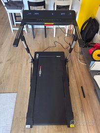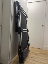 Usato pochissimo, vendo per inutilizzo Tapis Roulant Vegas Salvaspazio. Acquistato su Intergym, completo di regolare fattura. Questo tappeto elettrico si piega per essere riposto in uno spazio di circa 13.5 cm: (quasi) impossibile fare di meglio! E non è tutto. Il Tapis roulant salvaspazio VEGAS EXTRA SLIM è dotato di connettività Bluetooth che permette all’atleta di allenarsi con il supporto di app di tracking sportivo e ascoltare la musica tramite le casse integrate sul manubrio. Inoltre, il piano di corsa super ammortizzato salvaguarda le articolazioni e riduce la rumorosità durante l'utilizzo.