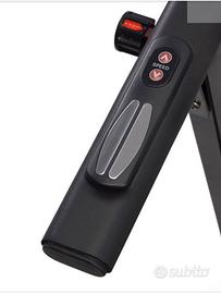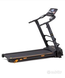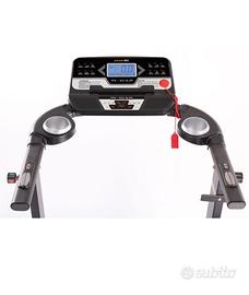 VENDO PER INUTILIZZO PRATICAMENTE NUOVO! Everfit TFK 355 Slim è il tapis roulant caratterizzato da arricchimenti di carattere estetico e funzionale, come il portabevande che completa la console e la barra trasversale che aumenta la già elevata stabilità. Inoltre, questo treadmill è dotato di un nuovo e innovativo sistema di apertura e chiusura facilitato, che consente di operare nel massimo comfort e sicurezza, senza necessità di svitare. CARATTERISTICHE TECNICHE Motore 1,75/2,75 (Peak) HP DC Velocità 0,8 - 14,0 Km/h con incremento di 0,1 km/h Inclinazione manuale su 3 livelli Piano di corsa 42.5 x 127 cm - spessore nastro 1,6 mm Programmi 1 libero, 12 presettati, body fat tester Display LCD 113x63 mm retro-illuminato blue backlight Sistema rilevazione frequenza cardiaca tramite hand-pulse Comandi velocità e start/stop su corrimano Tasti scelta rapida velocità: 2-4-6-8-10-12 Km/h Informazioni fornite dalla console:velocità - frequenza cardiaca-distanza-tempo-consumo calorico-programma in esecuzione Supporto per smartphone/tablet in dotazione Peso massimo utilizzatore 100 Kg Sistema ammortizzante piano di corsa su 12 elastomeri con sistema Air Cushions Diametro rulli anteriore ø42 mm - posteriore ø42 mm Peso del prodotto 48 Kg Dimensioni prodotto 163 x 74.5 x 143 cm Dimensione chiuso 25 x 74.5 x 159 cm Struttura pre-assemblato, nr. 2 ruote di trasporto Peso del prodotto imballato 55 Kg Dimensioni imballo 170 x 76.5 x 26 cm Certificazioni CE-ROHS-EN957 USATO POCHISSIMO!!!
