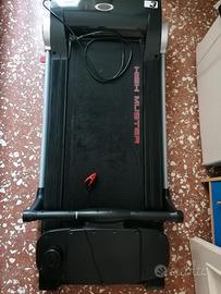 T 110 TAPIS ROULANT HIGH MUSTER Usato pochissime volte. Come nuovo. Funziona perfettamente. Pagato 800. Prezzo nuovo adesso 699 Design moderno e funzionale grazie anche al meccanismo automatico di uscita e rientro dei piedi stabilizzatori nella funzione salvaspazio. - Potenza: 1,5 HP continuo (3HP Peak) -Velocità: 0,8 - 14 Km/h -Inclinazione: Manuale a 2 livelli -Piano di corsa:cm. 124 x 41 -Ammortizzazione: elastomeri -Struttura: richiudibile salvaspazio -Dimensioni: Aperto cm. 160 x 70 x 135 Chiuso cm. 28 x 70 x 160 (extra slim in posizione verticale) -Peso: 44 kg -Portata max utente:110 Kg -Programmi: P1 manuale P2 distanza P3 tempo P4 calorie P5 15 minuti preimpostati-variazione di velocità P6 30 minuti preimpostati-variazione di velocità P7 45 minuti preimpostati-variazione di velocità -Consolle: Consolle con grande monodisplay LCD dove sono visualizzati tempo, distanza, velocità, pulsazioni, calorie, pendenza. Visualizzazione del programma svolto. -Easy control: Tasti per il controllo della velocità e accensione/spegnimento della macchina posizionati sulla barra di appoggio mani orizzontale. -Rilevazione cardiaca: HAND PULSE posizionati sulla barra di appoggio mani orizzontale