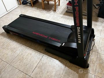 Modello: High Power Dallas V18 con motore che permette un allenamento da 1 a 18 Km/h, con inclinazione elettronica da 0 a 15% e pedana ammortizzata tramite sistema dual flex.