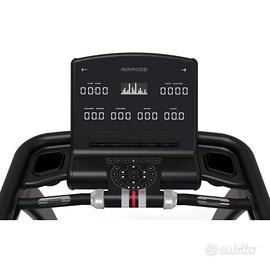 CONSOLE: 6 display LED bianchi + 1 display con grafica a LED bianchi. Informazioni: velocità, inclinazione, frequenza cardiaca, distanza, tempo, consumo calorico, step, altitudine, pace Plancia di comando con tecnologia touch screen capacitiva