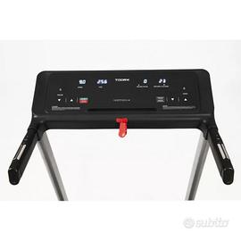 velocità, inclinazione, frequenza cardiaca, distanza, tempo, consumo calorico, step, pace, programma in esecuzione