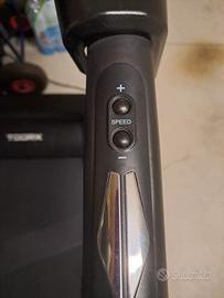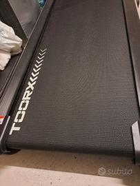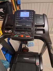 Vendo Tapis Roulant Toorx TRX-100, acwuistato a Maggio 2023, usato pochissimo, ancora con motore in garanzia, e pellicola protettiva sui tasti, mai tolta, vendo causa inutilizzo. Motore 4/7 (Peak) HP AC semiprofessionale, 2 casse audio, Aux-IN, USB, Velocità 1,0 - 22,0 Km/h con incremento di 0,1 km/h, Inclinazione elettrica 13% su 15 livelli, Programmi 1 libero, 16 presettati, 3 user, 3 HRC, body fat tester. No perditempo.