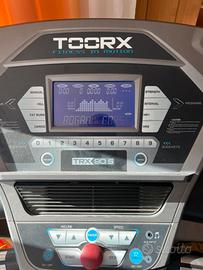 - Informazioni: velocità, inclinazione, frequenza cardiaca, ritmo di corsa, distanza, tempo, calorie bruciate, programma in esecuzione, giro 400 metri