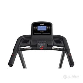 Informazioni: velocità, inclinazione, frequenza cardiaca, distanza, tempo, consumo calorico, step, pace, programma in esecuzione.