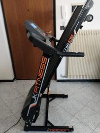 tapis roulant JK fitness richiudibile con velocità fino a 16 km/h e 12 livelli di salita, filo di sicurezza e programmi di allenamento. Praticamente nuovo, mai usato