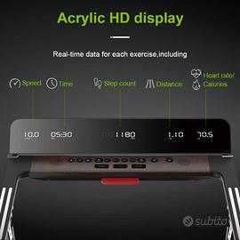 Dotato di un display HD per monitorare i dati in tempo reale: velocità, tempo, calorie, distanza e frequenza cardiaca.