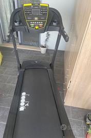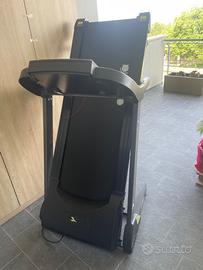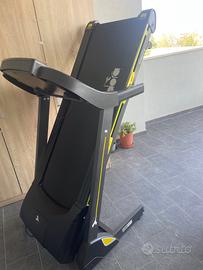 Tapis Roulant elettrico Diadora Trim 5.5, richiudibile e molto pratico da usare in casa. Dispone di inclinazione elettrica fino al 15%, motore da 2,25 HP e velocità regolabile da 1 a 18 km/h. E dotato di connessione Bluetooth, casse integrate con ingresso MP3 e rilevazione cardiaca tramite sensori hand pulse. Il monitor LCD retroilluminato permette di seguire facilmente l'allenamento, con ben 31 programmi diversi già preimpostati. Il tapis roulant è in condizioni eccellenti, pari al nuovo Prezzo trattabile.