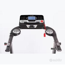 Motore; 2/3 (Peak) HP DC Velocita'; 0,8 - 16,0 Km/h con incremento di 0,1 km/h Piano di corsa; 420 x 1270 mm - spessore nastro 1,6 mm Programmi : 1 libero, 12 presettati, 1 HRC, body fat tester Sistema ammortizzante; piano di corsa su 12 elastomeri con sistema Air Cushions Inclinazione; elettrica 12% su 12 livelli Rilevazione cardio; hand pulse. Console; display LCD 113x63 mm retro-illuminato blue backlight ricevitore wireless per fascia cardio integrato comandi velocità e inclinazione su corrimano, tasti scelta rapida velocità: 3-6-9 Km/h, tasti scelta rapida inclinazione: 3-6-9 % Peso utente : 110 KG Peso prodotto 50 kg misure aperto 1600 x 760 x 1430 mm misure chiuso 250 x 760 x 1600 mm