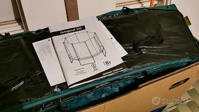 Tappeto elastico o trampolino ottagonale 300cm (Salta Salta). Prodotto smontato nel cambio di stagione invernale per preservarlo. Sia la parte metallica che i tessuti tenuti in ottimo stato. Imballato nella scatola originale suddividendo le viti dalle molle dalle altre parti. Possibilità di trovare, nel caso servissero, tutte le parti di ricambio.