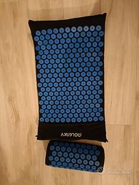 Vendo causa inutilizzo tappetino +cuscino per agopressione. Le parti blu sono in plastica e fanno protuberanze triangolari per simulare gli aghi.