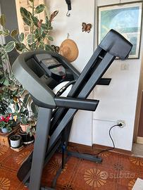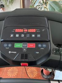 Vendo Tappeto corsa Tapis Roulant Elettrico Pieghevole T101 di Horizon usato pochissimo. Valuto spedizione/consegna a breve distanza e con modalità da concordare Tappeto ideale per chi vuole fare camminate o corse non troppo impegnative comodamente a casa, in modo regolare. Buona facilità di assemblaggio grazie al sistema One-Step, con un solo movimento è facile aprirlo (o chiuderlo), e iniziare ad allenarsi. La velocità massima di questo tappeto corsa Horizon T101 è di 18 chilometri orari, cosa che consente di fare allenamenti anche di media intensità senza alcun problema. Dati tecnici: Area di corsa: 140 x 51 cm Ammortizzazione: Variabile Motore: 2.5 HP Velocità: 0.8 – 18 km/h Inclinazione: 0 – 10% Peso prodotto: 82 kg Max peso utente: 124 kg Console Display 3 LED rossi Dati: - Tempo - Distanza - Inclinazione - Velocità - Calorie - Frequenza cardiaca. Programmi 41 programmi tra cui: - Manuale - Perdita di peso - Tempo - Distanza - Calorie Cardio: a contatto sulle impugnature, ricevitore wireless Caratteristiche extra: - Casse Bluetooth - - Ventola - USB carica (1A/5V) - modalità risparmio energetico - porta bottiglie - jack audio in/out - rack letture poggia tablet