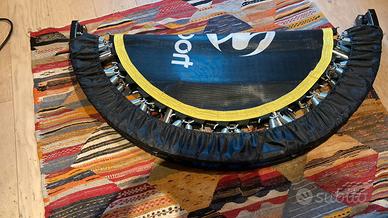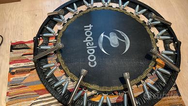 Tappeto elastico Coalsport metodo Jill Cooper, misura diametro 111 cm. Peso massimo supportato 130 kg. Pieghevole completo di sacca, barre di tenuta e ricambi. Libretto istruzioni disponibile. Perfetto stato.
