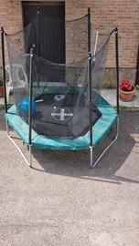 tappeto elastico con protezioni portata max 200 kg usato pochissimo e in inverno smontato e messo al riparo , ideale per allenamento e gioco ragazzi