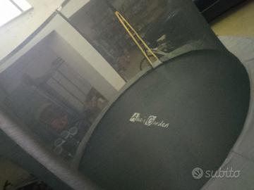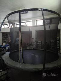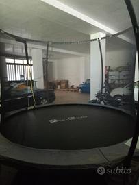 Tappeto Elastico Decatlon,usato solo una stagione praticamente NUOVO come si vede in foto il tappeto e' completo di sponda di sicurezza con zip,piano elastico del diametro di 2,5 metri,nessun danno o difetto vendo solo perche' i ragazzi non ci giocano piu'!