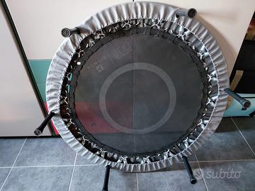 trampolino elastico con diametro di cm. 100 e altezza cm. 22, usato pochissime volte, tenuto come nuovo con piedini smontabili e molle in ottima tenuta.
