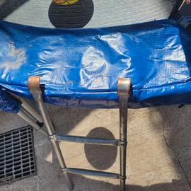 Tappeto elastico con alcuni difetti mostrati nelle foto, tessuto rovinato all'entrata e scaletta da ripitturare. Verra' lavato prima della vendita, al momento c'è un po' di polvere. Da smontare