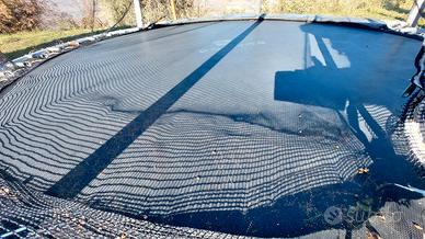 Trampolino elastico decathlon diametro telo 195cm, modello domyos 240 per esterni. Telo e molle ancora in ottime condizioni, coprimolle imbottito esterno da sostituire, rete di protezione con zip di chiusura funzionante ma rotta esternamente (da rammendare per i più volenterosi).