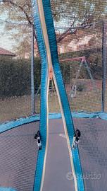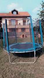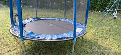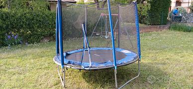 Tappeto elastico m 2.50 circa - h 220. Poco utilizzato e sempre riposto al coperto. Ottime condizioni , il rivestimento circolare perimetrale è da sostituire, ma ha una funzione solo estetica, è perfettamente funzionante . Il salterino è montato e disponibile a qualsiasi prova.