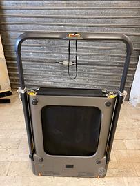 Tapis roulant sottile completamente pieghevole in modo da poterlo riporre ovunque al termine dell'allenamento o se si desidera trasportarlo in un altro luogo. Ha uno schermo LCD che mostra velocità, distanza percorsa, calorie bruciate e tempo percorse in modo da poter avere il controllo completo del tuo allenamento. Oltre l’app dedicata che consente il monitoraggio di altri dati. Con il telecomando puoi accendere/spegnere il dispositivo, accelerare, rallentare e cambiare modalità.