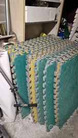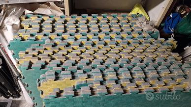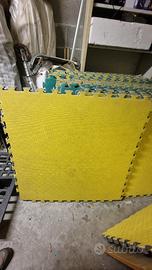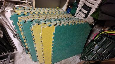 27 piastrelle in EVA progettate per creare pavimentazioni sportive tipo tatami ad incastro. Ideali per creare superfici ammortizzanti per palestre, arti marziali (karate, judo, taekwondo), aree gioco per bambini o aree fitness funzionali. Sono leggere, lavabili, impermeabili e dotate di un sistema a incastro tipo puzzle che non richiede colla per l'installazione. Di dimensioni standard 100x100 cm con spessore 2 cm. consegna di persona a Milano