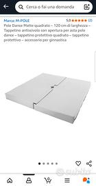 Tappetone/materasso antiscivolo quadrato per palo da pole dance di colore argento con apertura al centro e chiusura con velcro, misure 120x120 cm e altezza/spessore di 10 cm, ideale per ammortizzare le cadute. Marca M-POLE. Nota: il tappetone è ancora imballato, quello grigio a terra è il mio ed è dello stesso modello. Lo vendo perché ce l'ho doppio e avevo sbagliato colore. Il colore argento è visibile nell'ultima foto. Pagato 145 su Amazon. Facile da pulire (basta un panno umido). Per qualsiasi altra informazione scrivetemi, consegna a mano zona Vicenza e limitrofi. Non spedisco perché troppo grande e non viene accettato dalle società di spedizioni