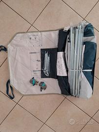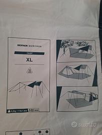 Vendo tarp XL della Decathlon, come nuovo e completo di tutti gli accessori (picchetti, tiranti, pali). Dotato di tecnologia FRESH. Dimensioni 370x427 cm. Acquistato per l'estate 2025 (quindi ancora in garanzia) da usare come protezione per la tenda in caso di pioggia. L'abbiamo montato solo per due giorni in previsione di un forte temporale, che poi non c'è stato. Si può usare per vari scopi e con varie conformazioni, come si vede dalle foto. Prezzo attuale sul sito Decathlon: 74,99 €.