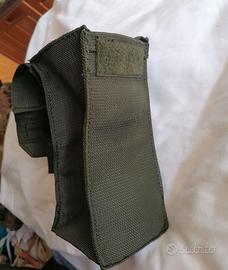 Comoda sacca porta caricatori o custodia per altri accessori: radio, acqua, telefoni. Originale esercito, con agganci in ferro per cinturone e chiusura in velcro. Adatto a riviste M4 / M16.
