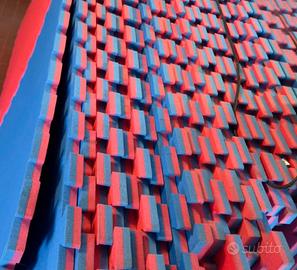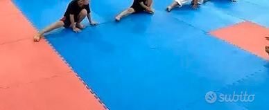Cedo quattro aree di cui due aree da 64 pezzi cad. di tatami Rosso/Blu 2cm spessore. Utilizzato 4/5 volte l’anno. €1200 ad area. E due aree sempre da 64 pezzi spessore 2cm rosso/blu a €1000 ad area. No perditempo ed affaristi