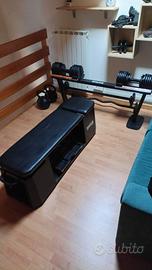 PANCA CON SCHIENALE MOBILE 2 MANUBRI REGILABILI 25KG KIT COMPLETO PORTA MANUBRI 2 BILANCIERI 2 KETTEBELL REGOLABILI DA 18,5KG POCO USATI........