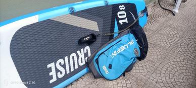 Tavola Bluefin 10.8 con accessori, pompa borsa leash e pagaia. Perfetta per escursioni di breve media distanza. Usata solo due estati. Con portapacchi e paddle per il sup da onda. Tavola versatile con anche il sedile per la canoa