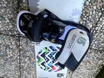 Tavola da snowboard + custodia Widze - Marca Nitro Burton Misura: 140cm Condizioni: Usata, in buone condizioni Include: Tavola da snowboard Nitro Burton Attacchi Burton della Decathlon Custodia Widze Prezzo: 200€ per tutto il kit (tavola + attacchi + custodia) Per ulteriori info o foto, contattami!