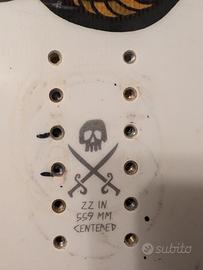 Misura 155 Flex Flex: 4 La Scallywag è pensata per un rider di livello intermedio pronto a fare un salto di qualità e che desidera una tavola con un flex sufficiente per assorbire la neve fresca e girare per il park. Costruzione e anima Anima in pioppo: la sensazione freestyle dei laminati in pioppo rende questa anima molto apprezzata. Leggera, flessibile e indulgente, galleggia facilmente nella neve fresca e offre più pop rispetto alla schiuma. Tecnologia Chilly Dog: con la sua forma che ricorda una salsiccia bollita anziché una banana scivolosa, un pesce morto o un rocker anni '80, il profilo a raggio continuo di Forum emerge quando si punta la tavola, sia in punta che in coda. La Chilly Dog permette transizioni fluide, non affonda nel bordo e riemerge come cipolle e jalapenos piccanti in atterraggio in switch. Soletta Freebase: questa soletta è inclusa gratuitamente con la tavola e scivola sulla neve fresca. Si sciolina facilmente, ha un bell'aspetto con grafiche fustellate e protegge l'anima dall'usura. Fianchi e lamine Tecnologia Swingers Club: Le anime in legno Forum vengono profilate con macchine a controllo numerico (CNC) in modo che le estremità siano sottili come quelle di una top model. La minore densità alle estremità significa anche che la punta si solleva più velocemente su terreni non battuti, consentendo un'uscita rapida da situazioni insidiose.