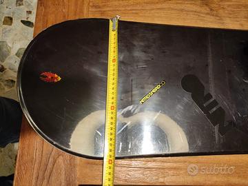 Tavola da snowboard Nitro Icon 62 da 159 cm, larga max 300 min 250 mm. Completa di attacchi Nitro Commando e pad antiscivolo. La tavola e' usata e con qualche sbeccatura ma di alta qualità e l’avevo presa nuova al Workshop di Cormons quindi unico proprietario..è stata appena sciolinata e rifatte lamine con cura da professionista. Ad uno dei due attacchi ho cambiato la fascia inferiore che la sua si era rotta, ne ho messa una di un altro attacco. Cedo insieme al suo borsone imbottito e con tasche. Tavola tipo (Arbor, Bataleon, Burton, Capita, DC, Gnu, Jones, K2, Lib Tech, Never Summer, Nidecker, Ride, Yes).