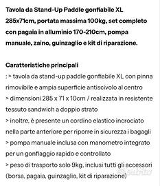 Vendo tavola da Sup nuova, mai usata. Come da foto completa di accessori e borsone. Misure 285x71x10cm. Prezzo €240 trattabili