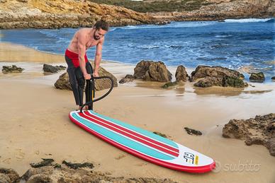 Contenuto della confezione: 1 tavola da surf, 1 pompa a mano, 1 zaino, 1 guinzaglio da surf, 1 pinna centrale, kit di riparazione