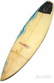 E' una tavola da surf vera, da competizione, lunga 180cm circa, spezzata durante una gara di surf e riparata da Aloha Surf Extreme di Kaneohe dell'isola di O'hau, Hawaii, che me l'ha venduta.