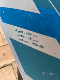 Bic Blast 140 litri completa di pinna Drake. Tavola super planante perfetta per venti leggeri e per progredire. Piccole riparazioni a prua appena effettuate da professionista.