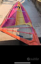 Materiale in buono stato,utilizzato da una singola epersona. Tenuto all’interno e non esposto alle condizioni atmosferiche esterne. 1 tavola da Wind surf professionale,3 vele,1 boma.