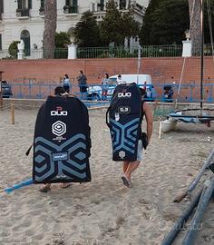 metà rigida in carbonio , la poppa e quindi la parte planantee metà gonfiabile tipo SUP. Scassa deep tuttle box Foil ready . Ho anche il Foil eventualemente che vendo a parte. completa di Pinna, steps e sacca originali (trolley con ruote).