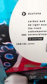 Duotone Jaime 2023 136/41 usata in buone condizioni generali. Segni come da foto. Maniglia, pinne e Ergo Pads taglia M inclusi. Possibilità di spedizione.