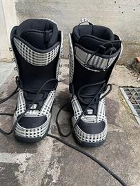 Vendo tavola snowboard misura 155cm usata per due uscite livello principiante , presenta livi segni di usura. Vendo insieme agli attacchi e con scarponi numero 41