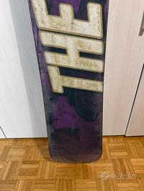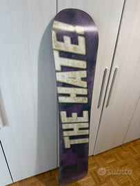Tavola Burton Hate 155, true twin freestyle, ideale per park, jibbing e uso all‑mountain giocoso. Profilo rocker/flat con flex morbido, molto permissiva per principianti e intermedi, grafica originale in stile comics