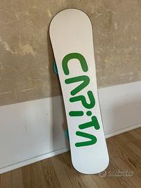 Vendo tavola da snowboard della Capita, modello Micro Mini misura 105. Compresa di attacchi Salomon Good Time. La tavola è ottima, ha qualche segno di usara ma nessuna compromissione alla struttura.