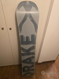 Come da titolo tavola Drake Gt da 150cm. ideale per peso fra i 55-75kg o 170cm di altezza. Tavola adatta al principiante, bidirezionale semplice e intuitiva. Sempre usata in pista mai usata per park. Gia dotata di grip per scarpone per andatura a un piede. La tavola non è wide, quindi non adatta a piedi grandi (dal 44 in su). Tavola da rifare lamina e sciolina.