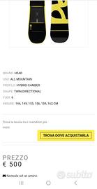 Vendo splendida Head Instinct 156 con tecnologia i.KERS, una tavola reattiva e performante, perfetta per chi cerca velocità, precisione e stabilità in ogni condizione.