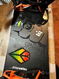 Gli attacchi sono dei Raiden nitro anch’essi in buone condizioni presentano qualche graffio ed abrasione per il normale utilizzo, purtroppo non risulta presente il tappo copri viti degli attacchi.